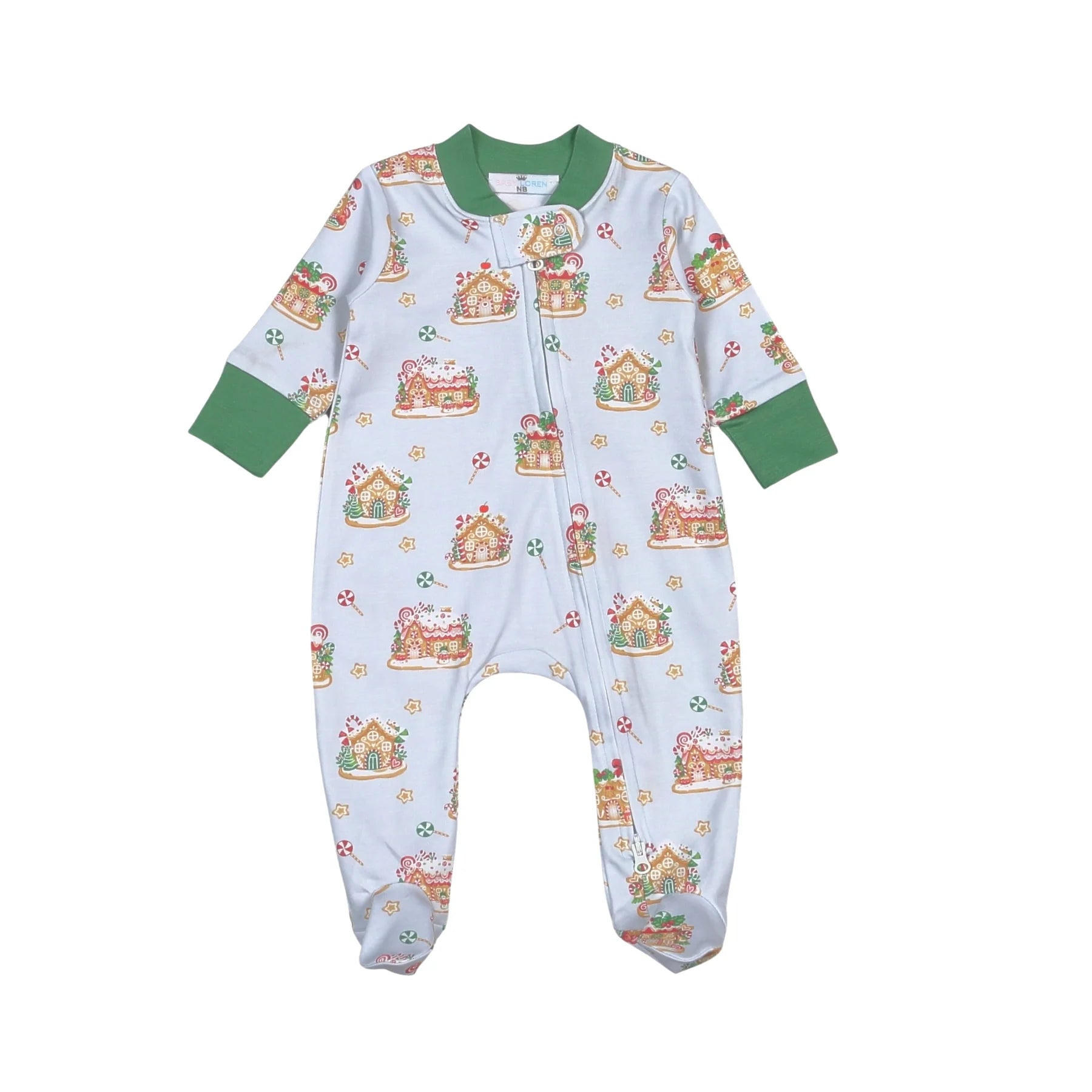 Gingerbread House Pima Zipper Footie