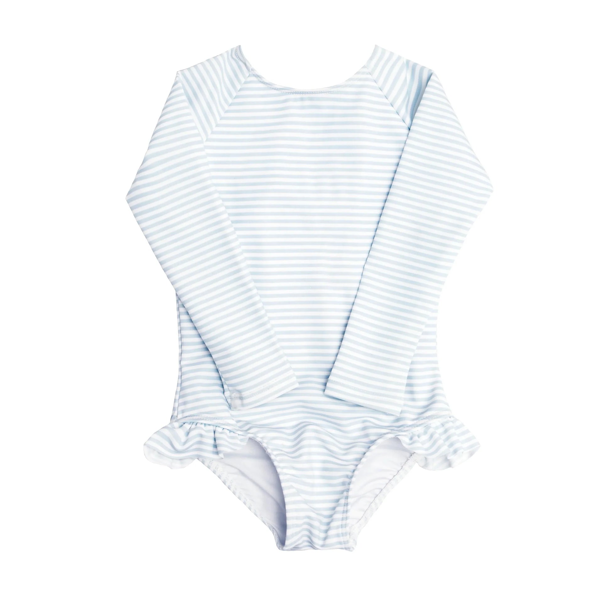 girls powder blue stripe ruffle sleeve rashguard one piece